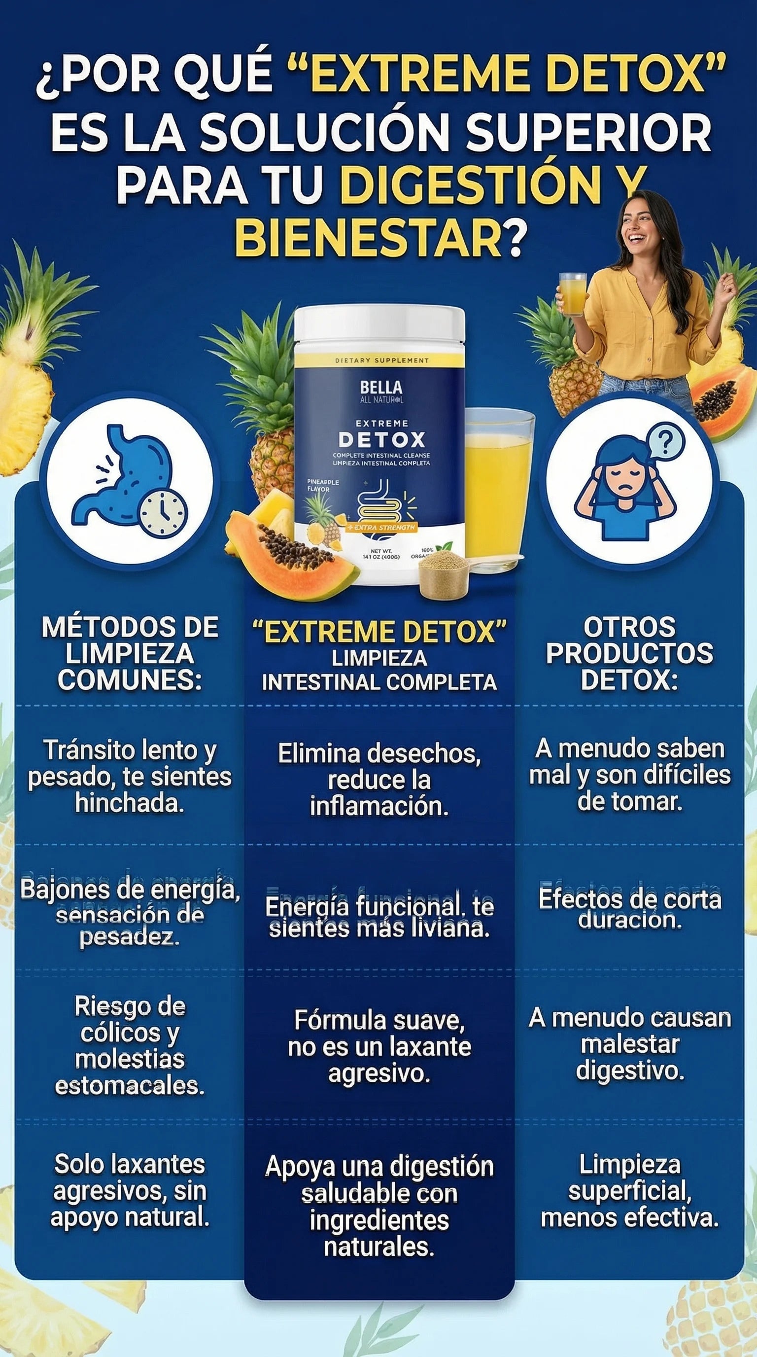 La mayoría de los productos en el mercado "económicos" contienen entre un 50 % y un 70 % de los composición que indican, empeorando la absorción. BELLA DETOX cuenta con un está estandarizado con una formula que única y exclusiva que no escatima en nada, solo buscando el adecuado funcionamiento en el organismo de las personas.