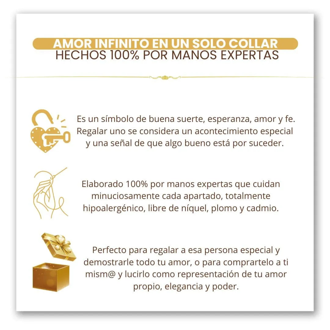 Tu collar es 100% hipoalergénico, libre de níquel, plomo y cadmio. Esto garantiza que es apto para todo tipo de piel.